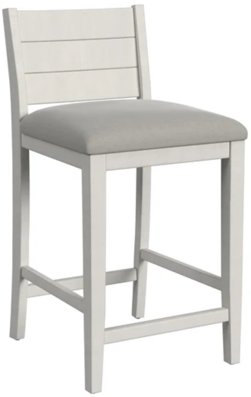 With a clean-line design, refresh your coastal/cottage kitchen or entertainment space with the Fowler counter height stool. Constructed of wood in a sea white finish, the stool’s planked back adds unique detailing. The slat back pattern is complemented by a fog fabric seat on a straight leg wood base with footrest providing comfort and stability.Read More