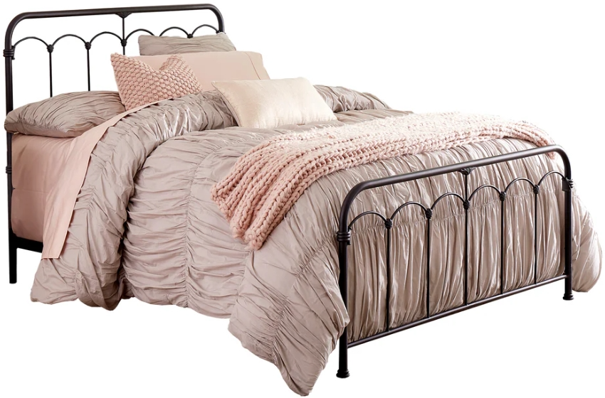 Simple and romantic. The Hillsdale Furniture Jocelyn Queen Bed boasts a traditional silhouette with a playful Black Speckle metal finish. Its delicate spindles culminate in gentle arches with clamshell castings between each arch that correspond splendidly with the whimsical rail connectors.Read More