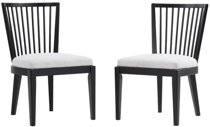 Crafted from wood in a black finish, these armless dining chairs set themselves apart with a spindle-back design that curves just so to make them the perfect place to relax over a meal or glass of wine. And with their naturally toned upholstered seats, get a hint of coastal in these modern farmhouse pieces. Assembly required.
