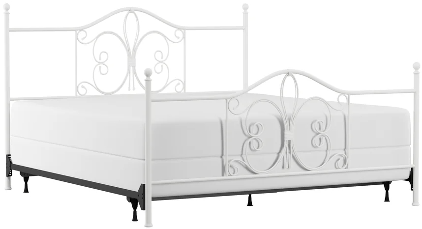 Whimsical and airy, this stunningly intricate king metal bed appears to float as if on a cloud. Look more closely and you’ll see the details are stunning. The arched headboard and footboard are adorned with graceful, rolling fleurs-de-lis, which give way to even more elegant scrolls.Read More